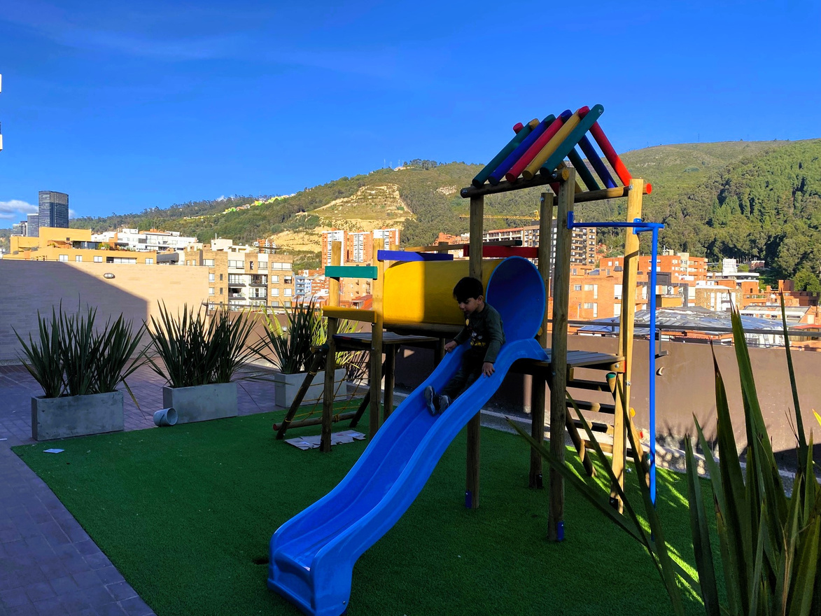 Zona de BBQ, parque infantil, Fire Place y zona para mascotas con las mejores vistas a los cerros y el norte de la ciudad.
